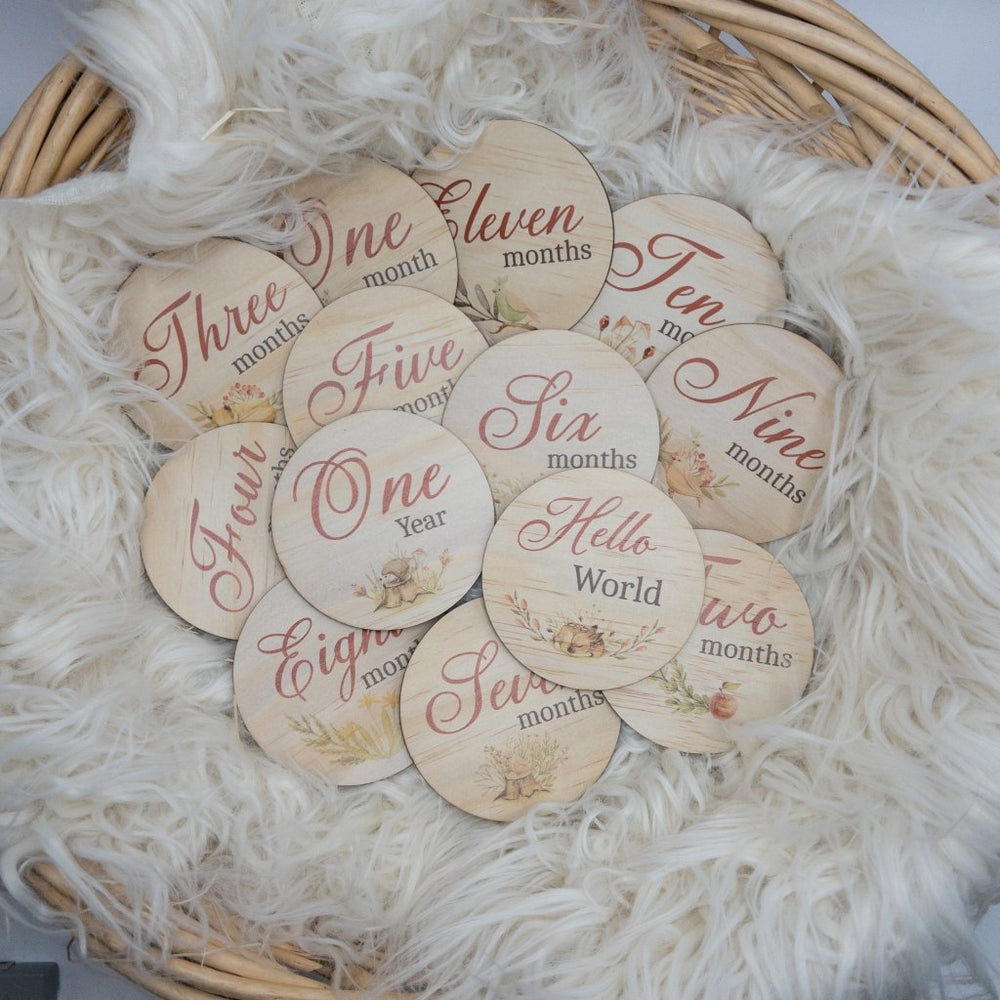 Capture cherished moments with the Forrest baby milestones disc. A perfect gift for a new mom or dad, these discs can be used by parents to document photographs with the age of the baby. This disc is a must-have keepsake item for families and friends!