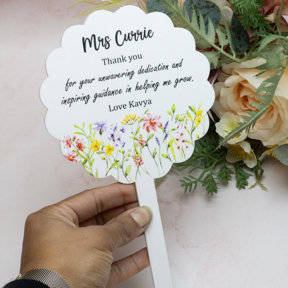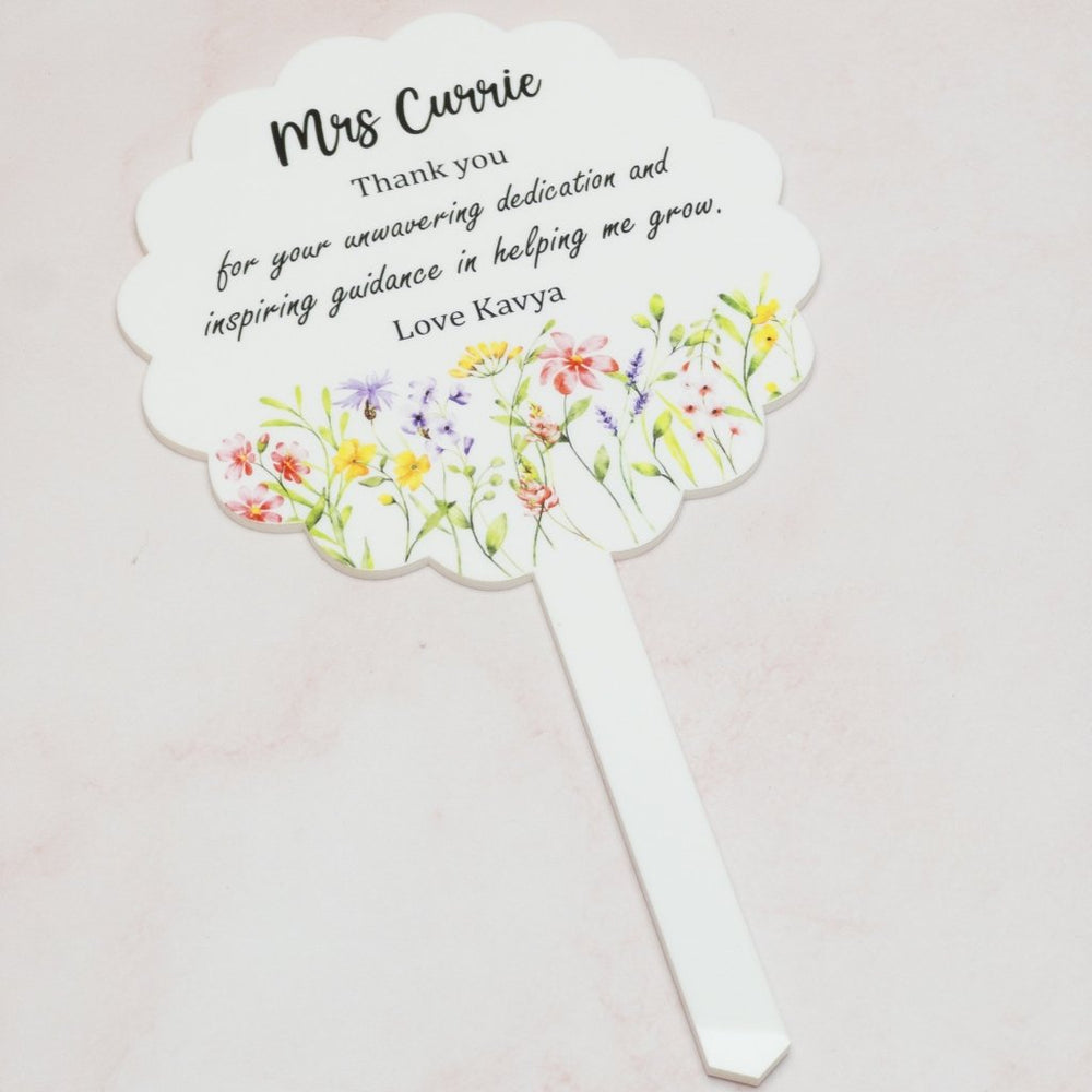 Our unique Planter Stick, crafted from durable 3mm acrylic, and customizable with your own personalized message. Whether you place them in a flower pot or amidst a lovely bunch of flowers, these sticks serve as a wonderful keepsake for plant lovers. Add a touch of sentiment to your greenery with our one-of-a-kind Planter Stick.