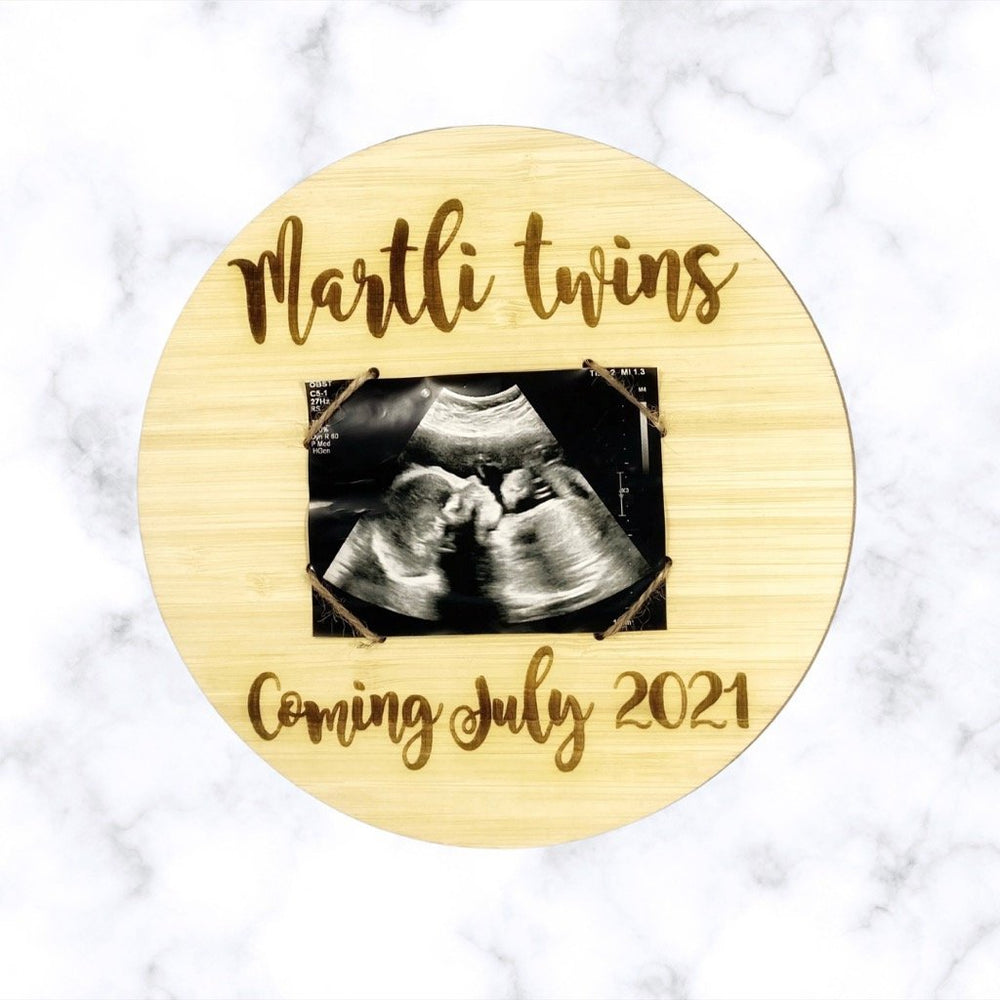 With a space to attach a ultrasound photo this plaque is popular for pregnancy photoshoots.